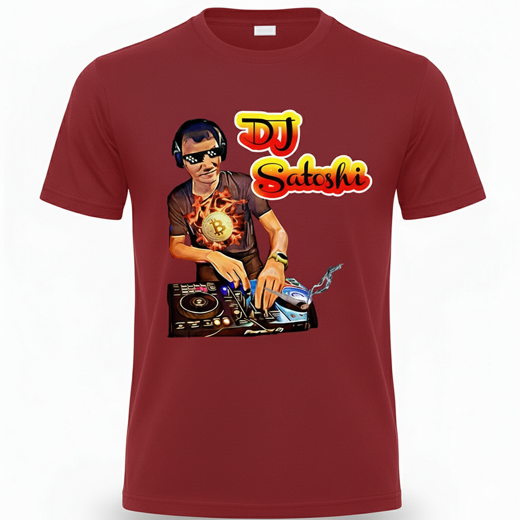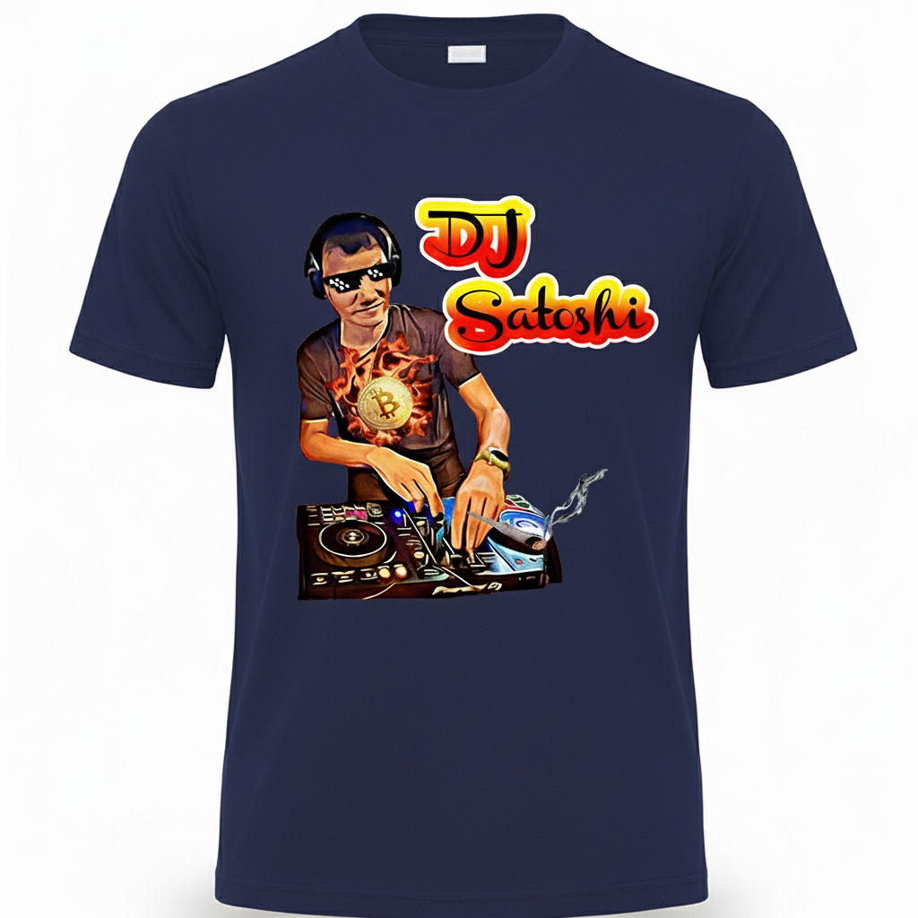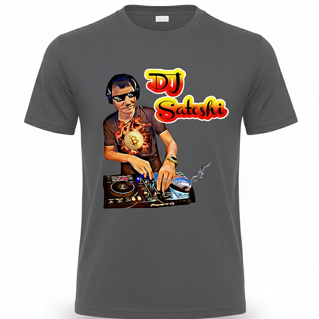 Free Shipping 3-6 weeksDJ Satoshi T-shirt – bold design, comfy fit, and perfect for stacking sats or dropping beats.
