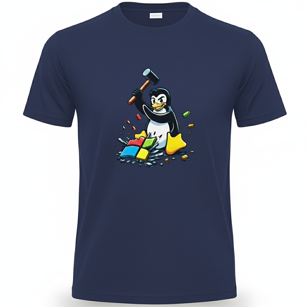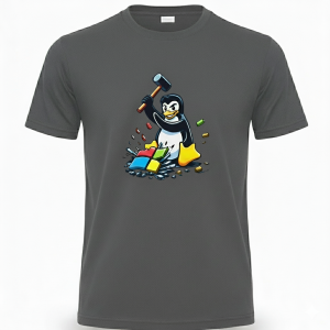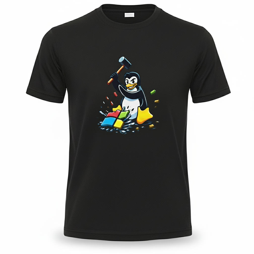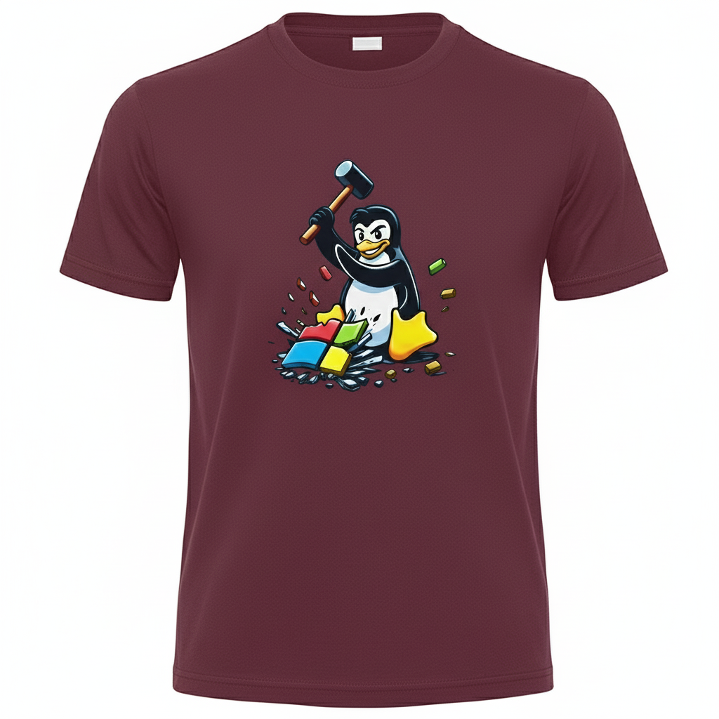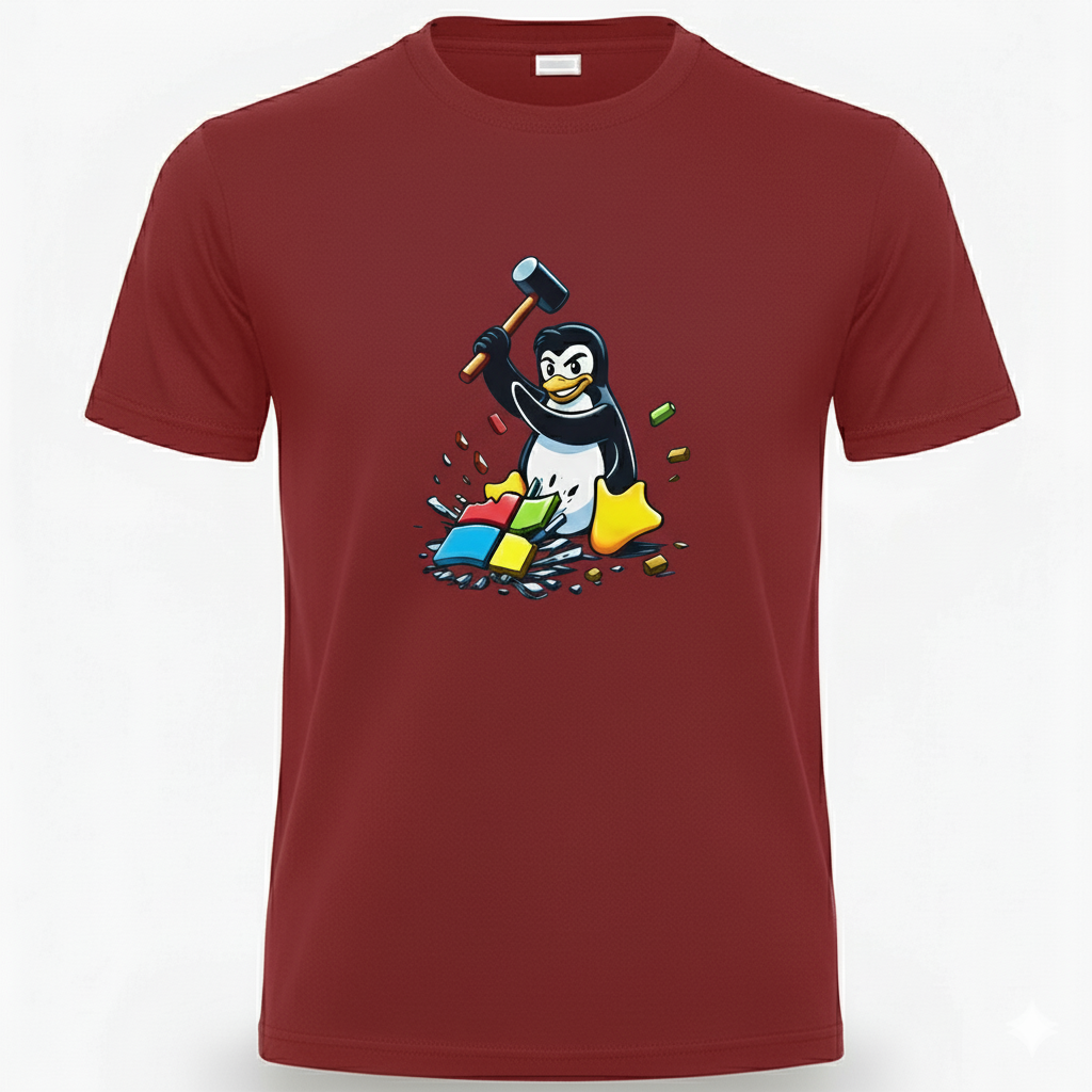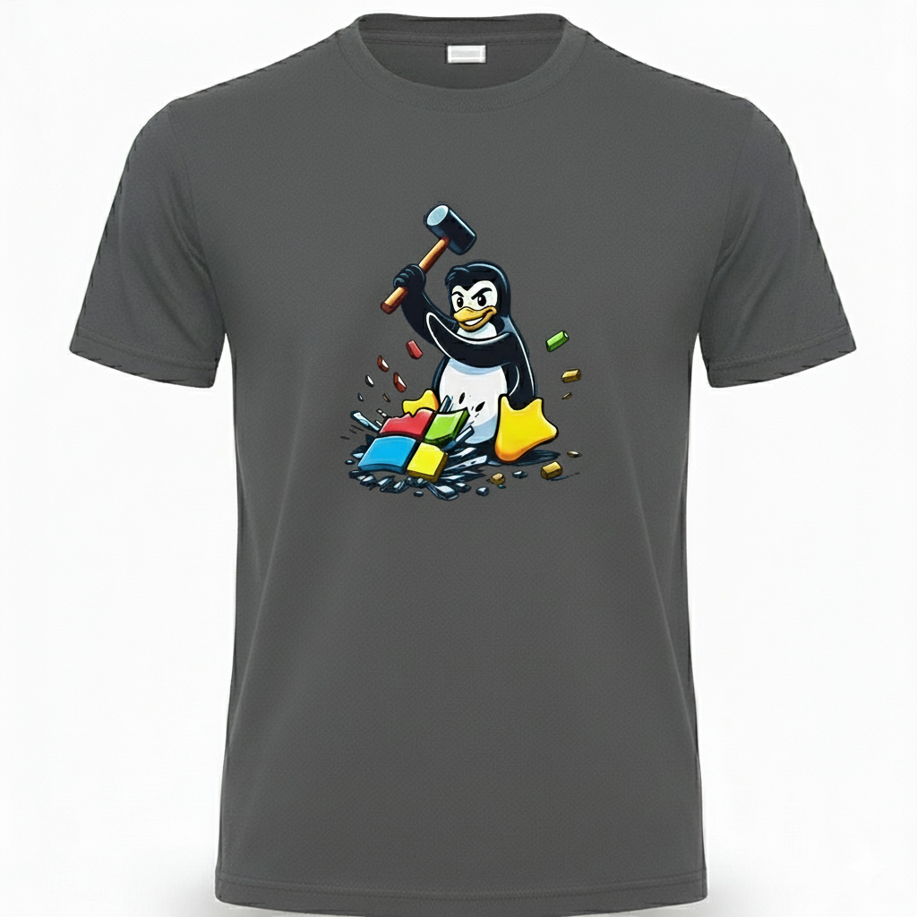 Free Shipping 3-6 weeksLinux Smashes Windows Tee – bold design, comfy fit, Penguin for freedom.