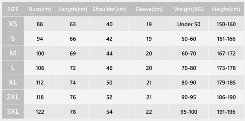 Size | XS, S, M, L, XL, 2XL, 3XL |